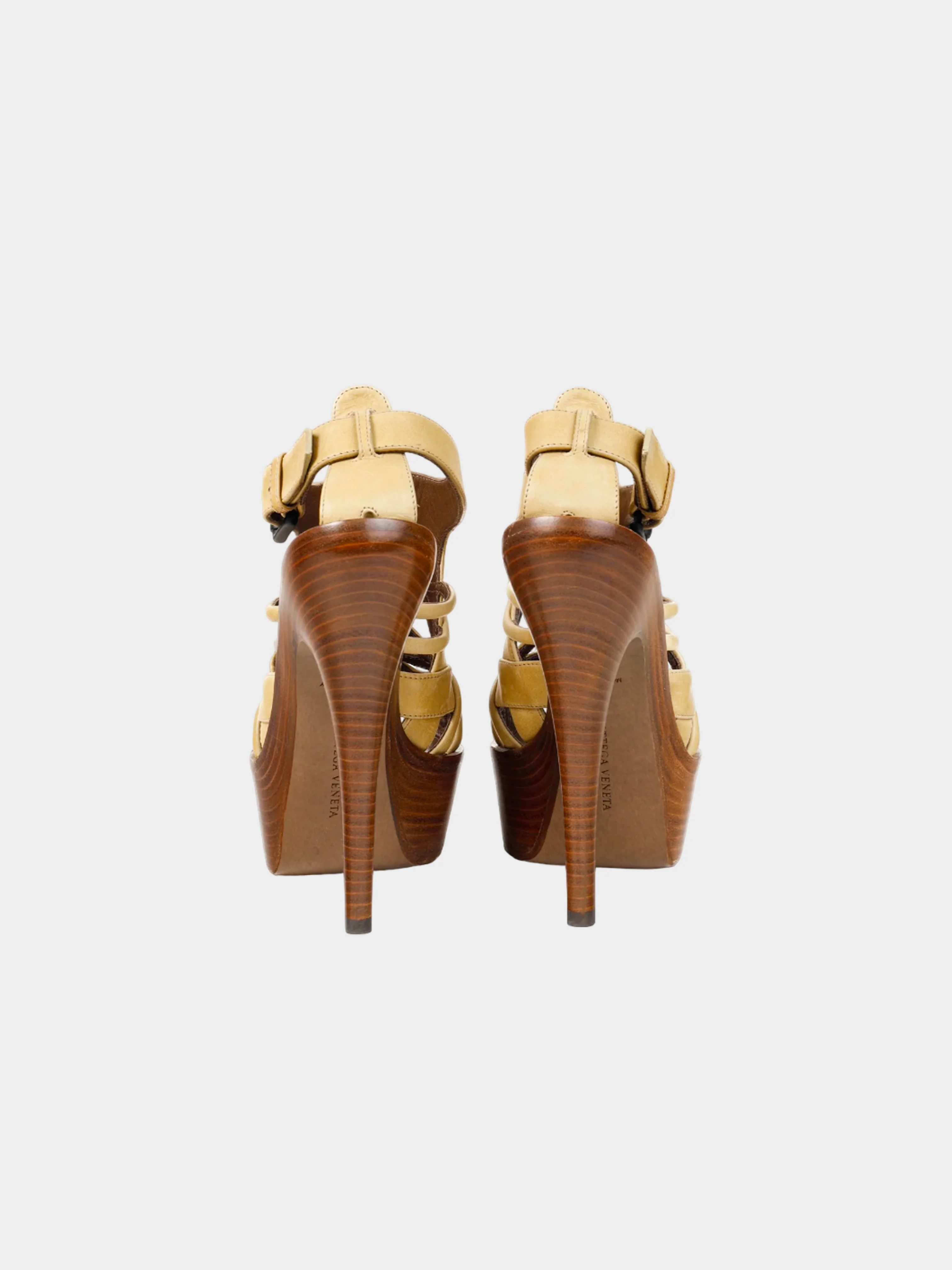 Bottega Veneta 2010s Beige Cage Wooden Platform Stiletto Heels