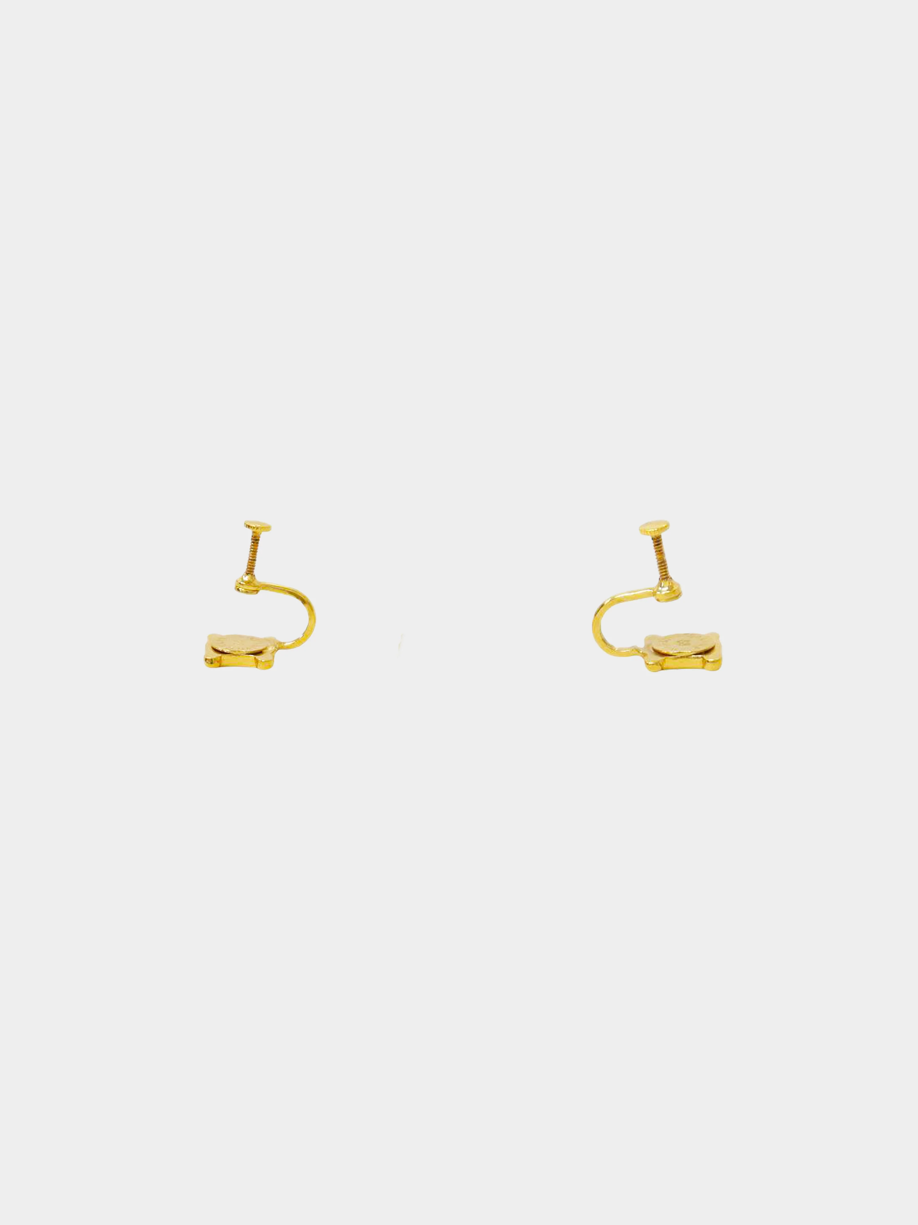 From the early 2000s Celine collection, these earrings are crafted out of gold-plated metal. It features the Triomphe logo motif and an engraved logo at the back. It has a screwback closure.