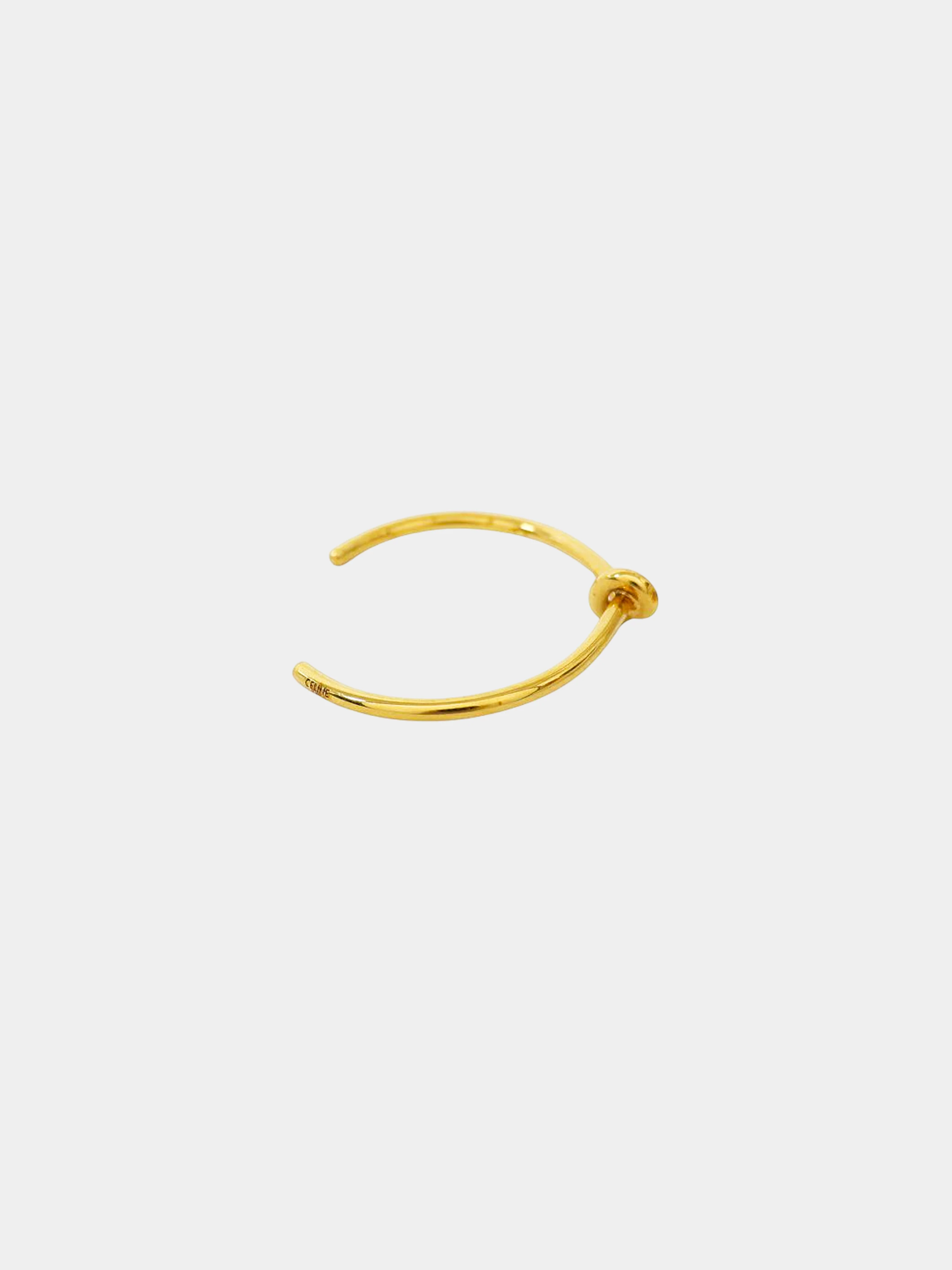 From a 2010s Céline collection, this bangle is constructed from gold-plated metal. It features a tie knot design. It has an engraved logo detail.