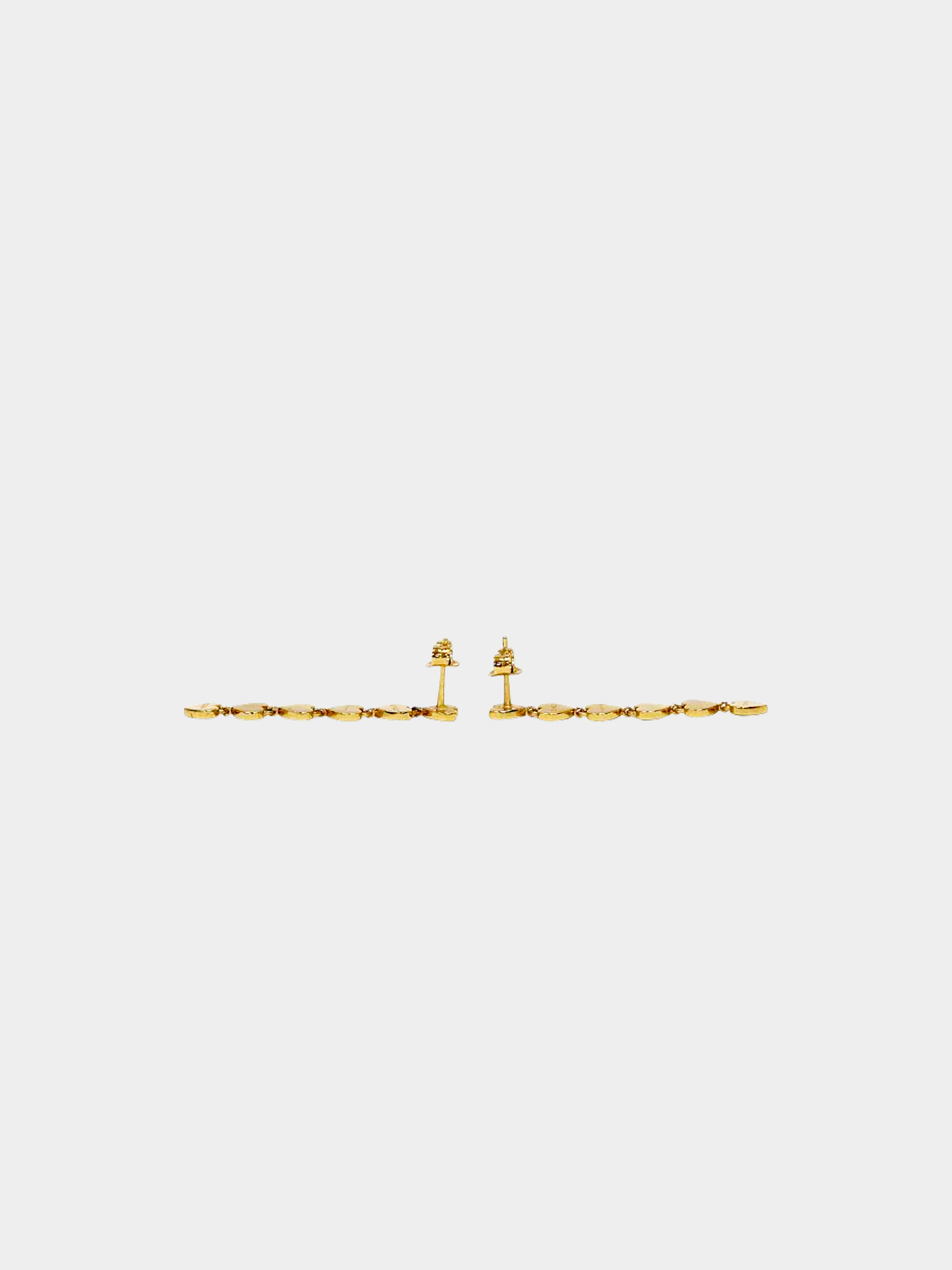 From the 2020s Celine collection, this pair of earrings is crafted from gold-plated brass. It features dangling hearts with engraved logo lettering. This pair is for pierced ears with push-back fastenings.