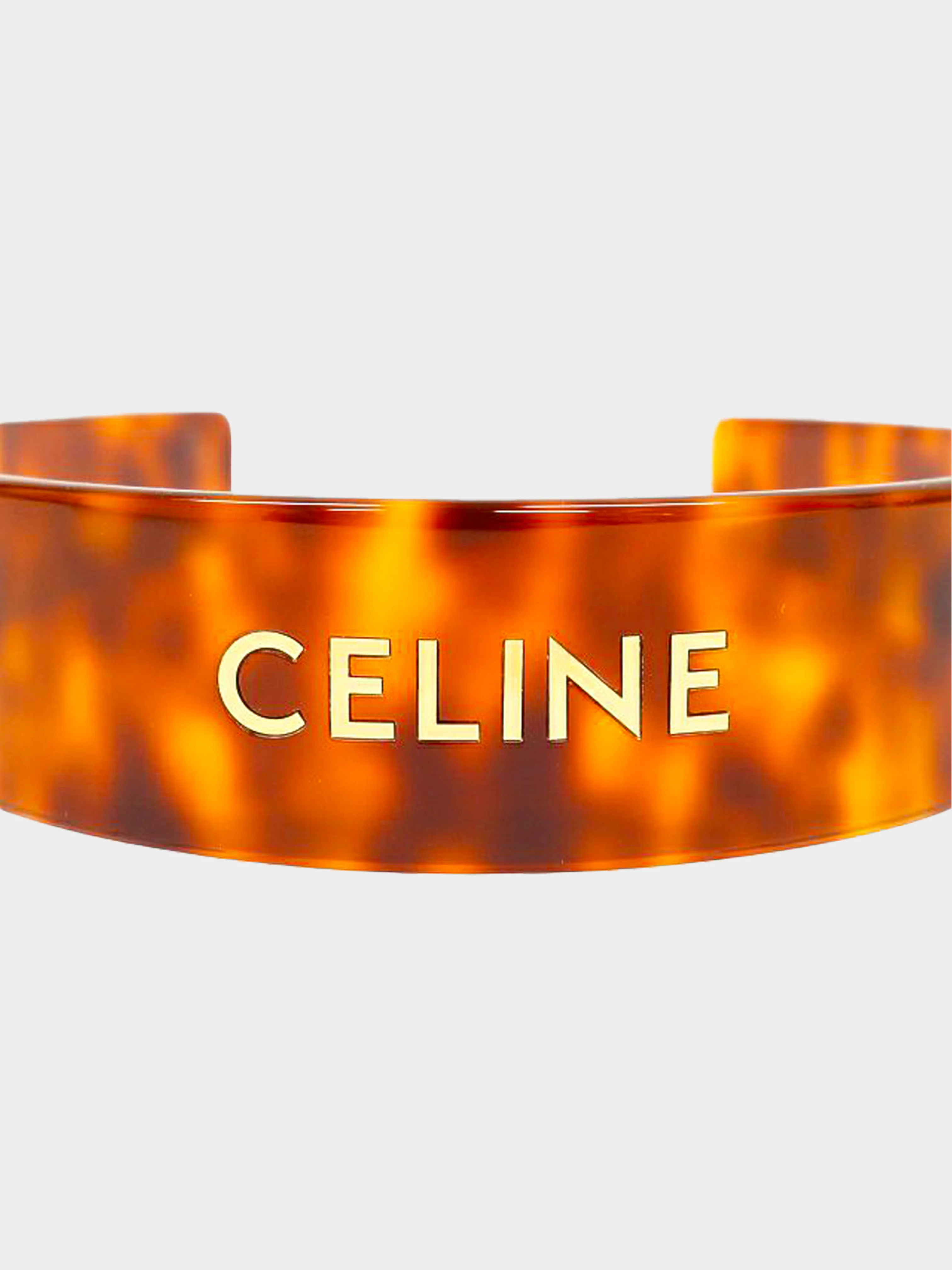 From the 2020s Celine collection, this headband is crafted from acetate in tortoiseshell-effect. It features a gold-toned logo plaque at the top.