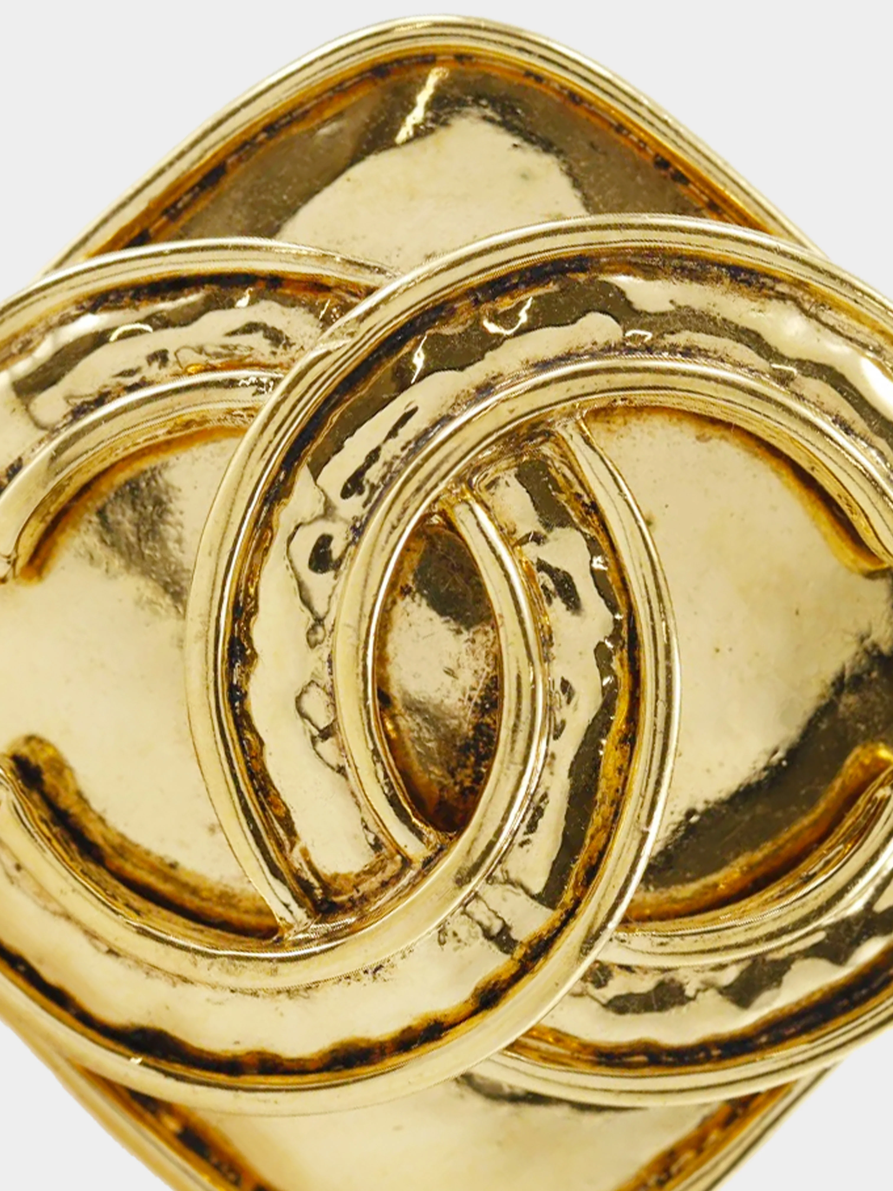 Chanel Spring 1994 Gold Plated Vintage Diamond CC Logo Clip-on Earrings