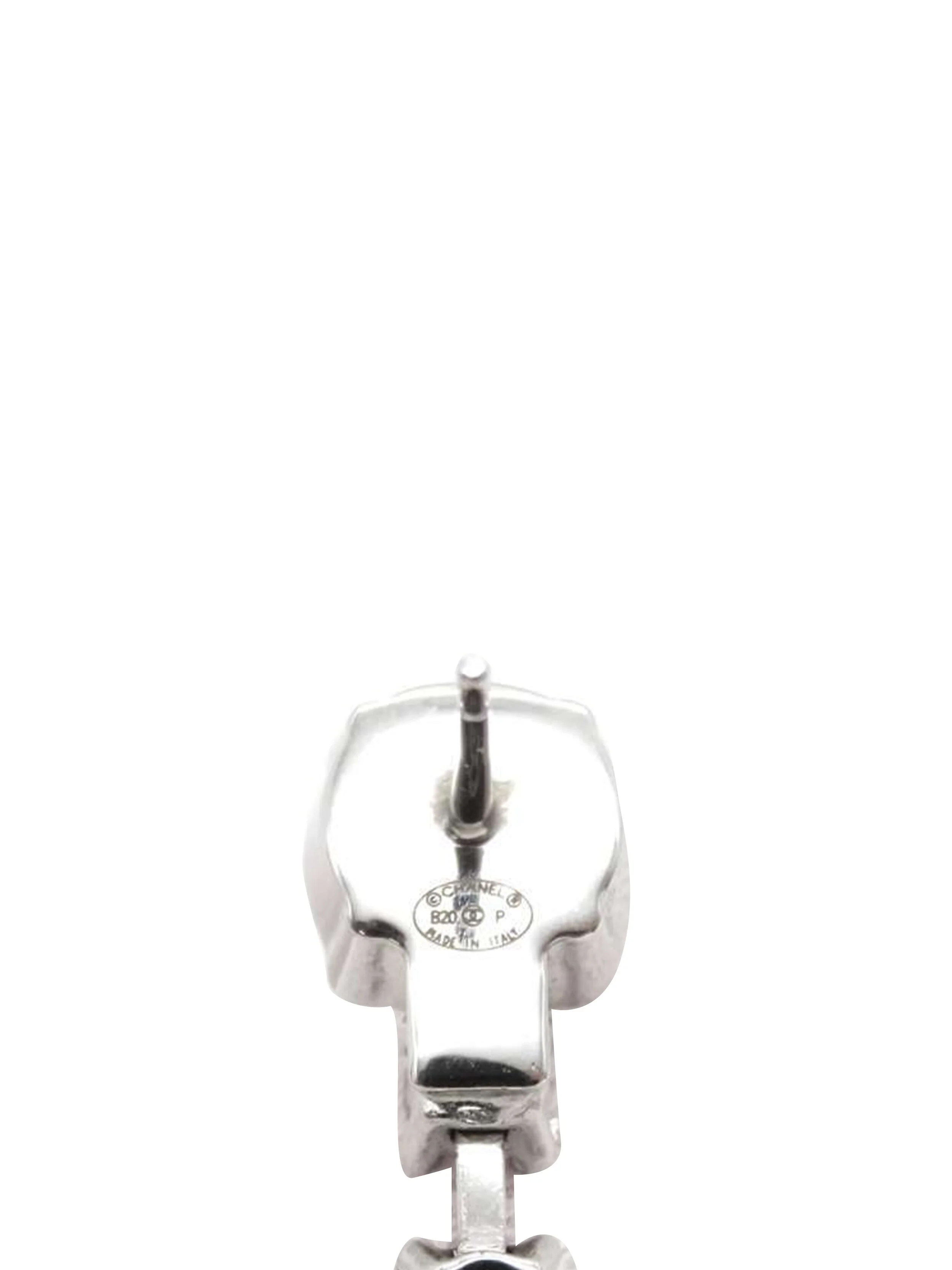 From an early Chanel collection, these incredible earrings feature the signature CC charms. Composed of genuine silver and lined with rhinestones. It has stud backings. Rare and hard to come by. Comes with the original box.