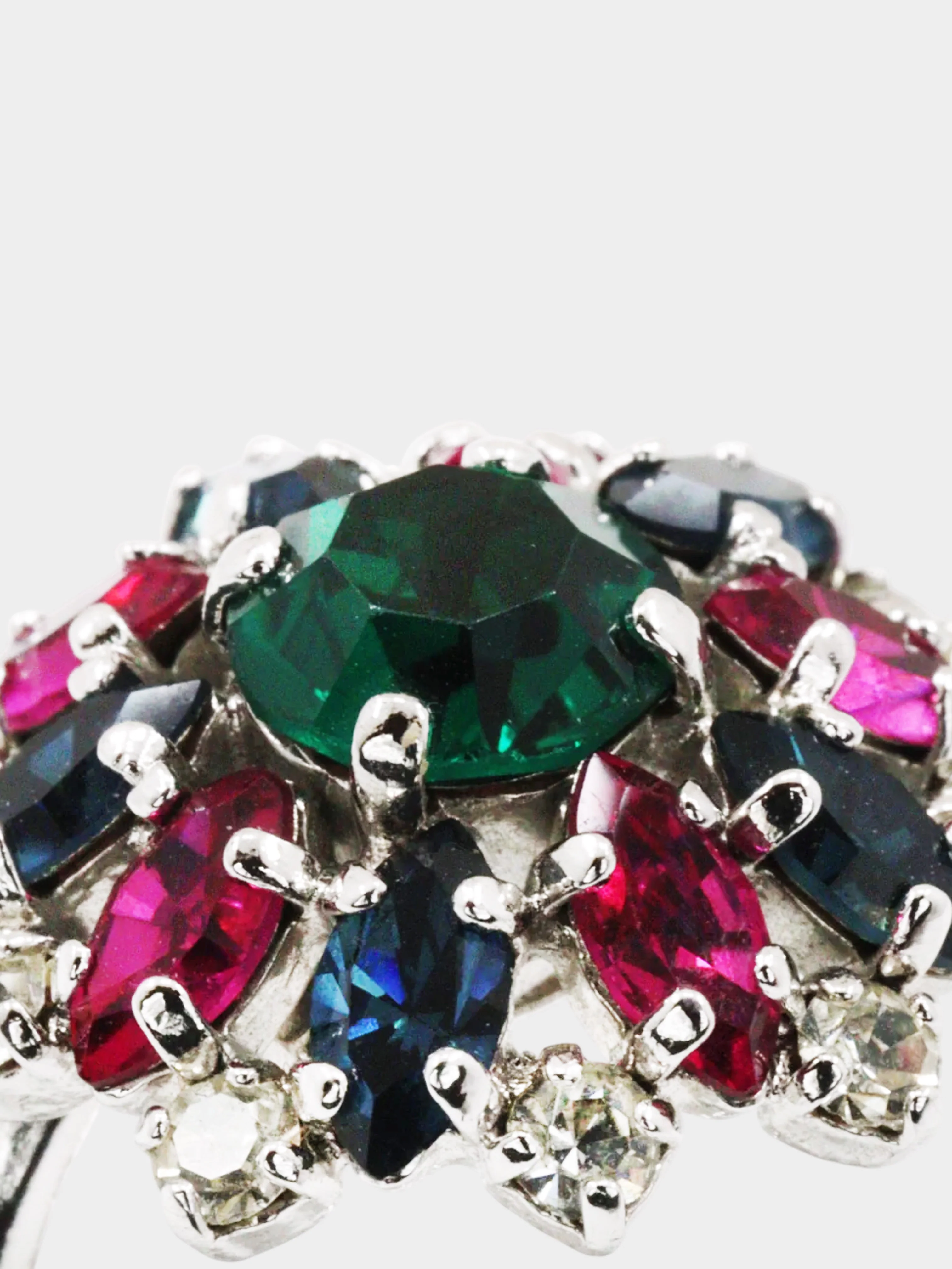 Christian Dior 1990s Silver Multicolor Rhinestone Ring