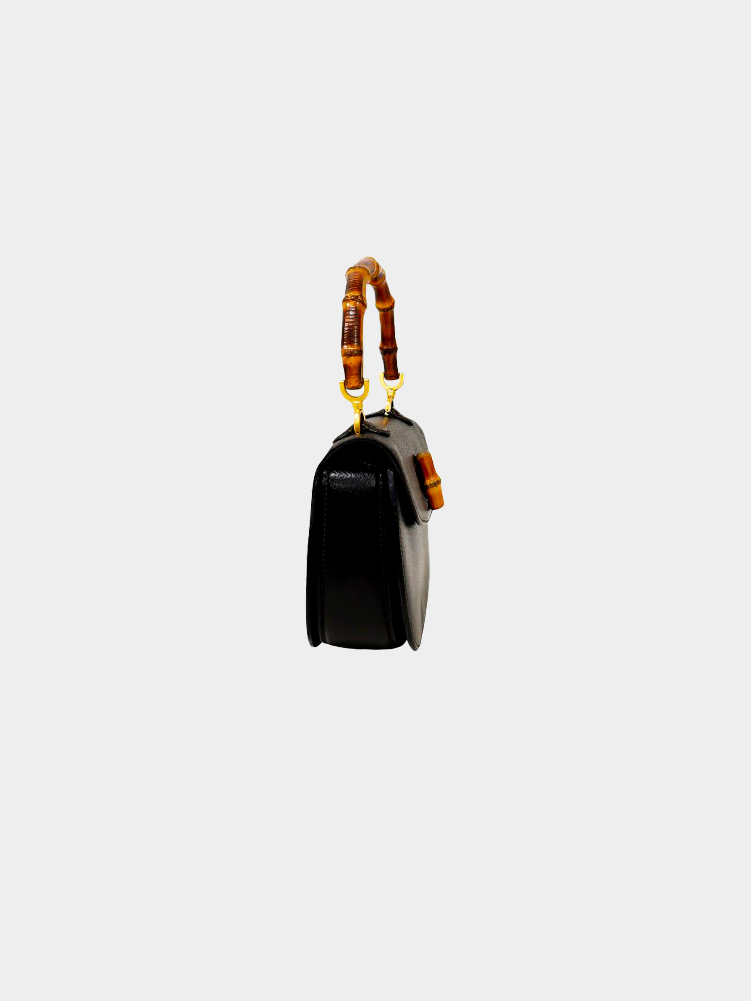 Gucci 1990s Black Leather Bamboo 1947 Two-Way Bag