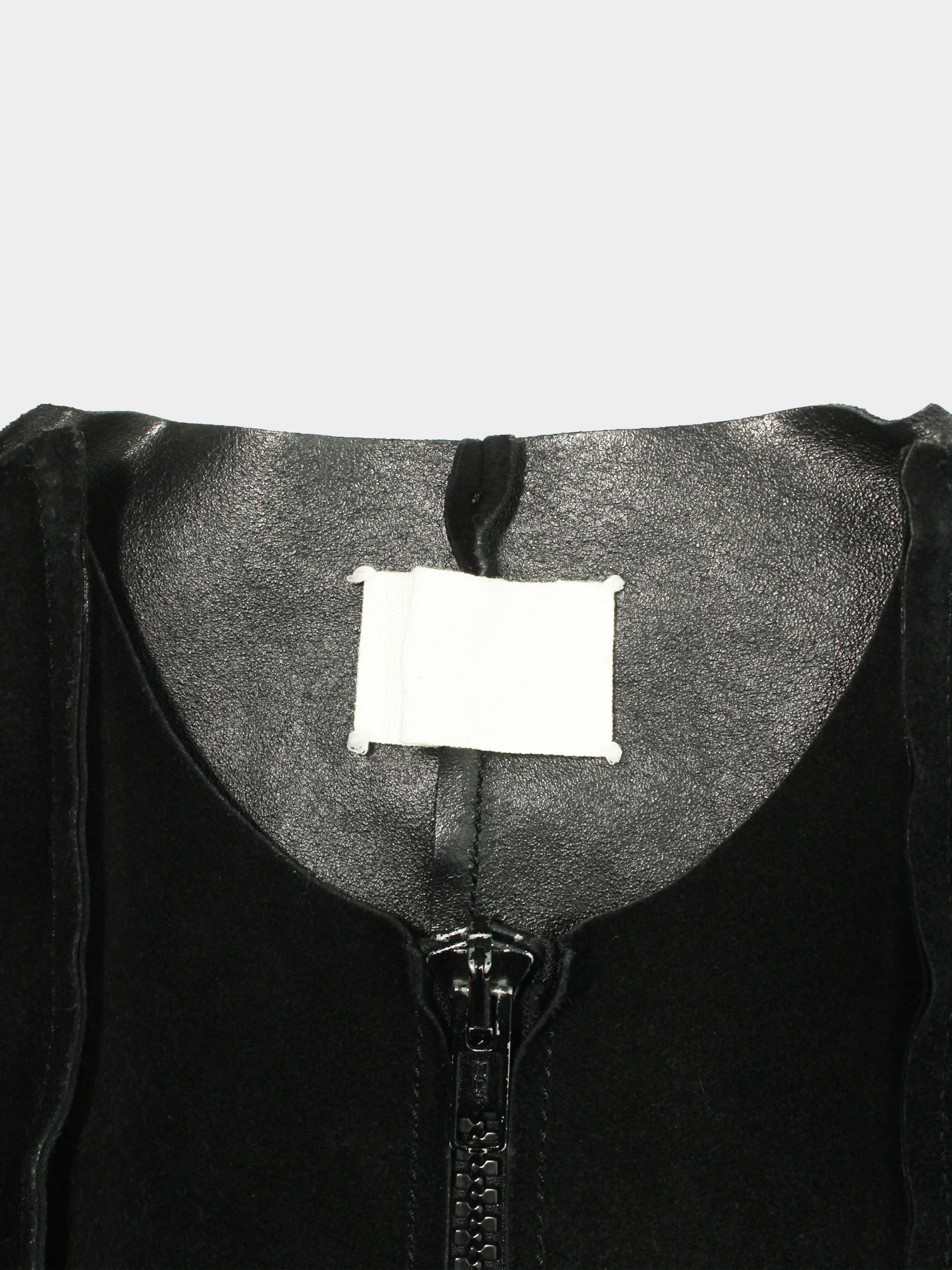 From a Spring Summer 1998 Maison Martin Margiela collection, this tank top is crafted out of smooth black leather. It features a fitted silhouette, front princess seams and a front zip closure.Â