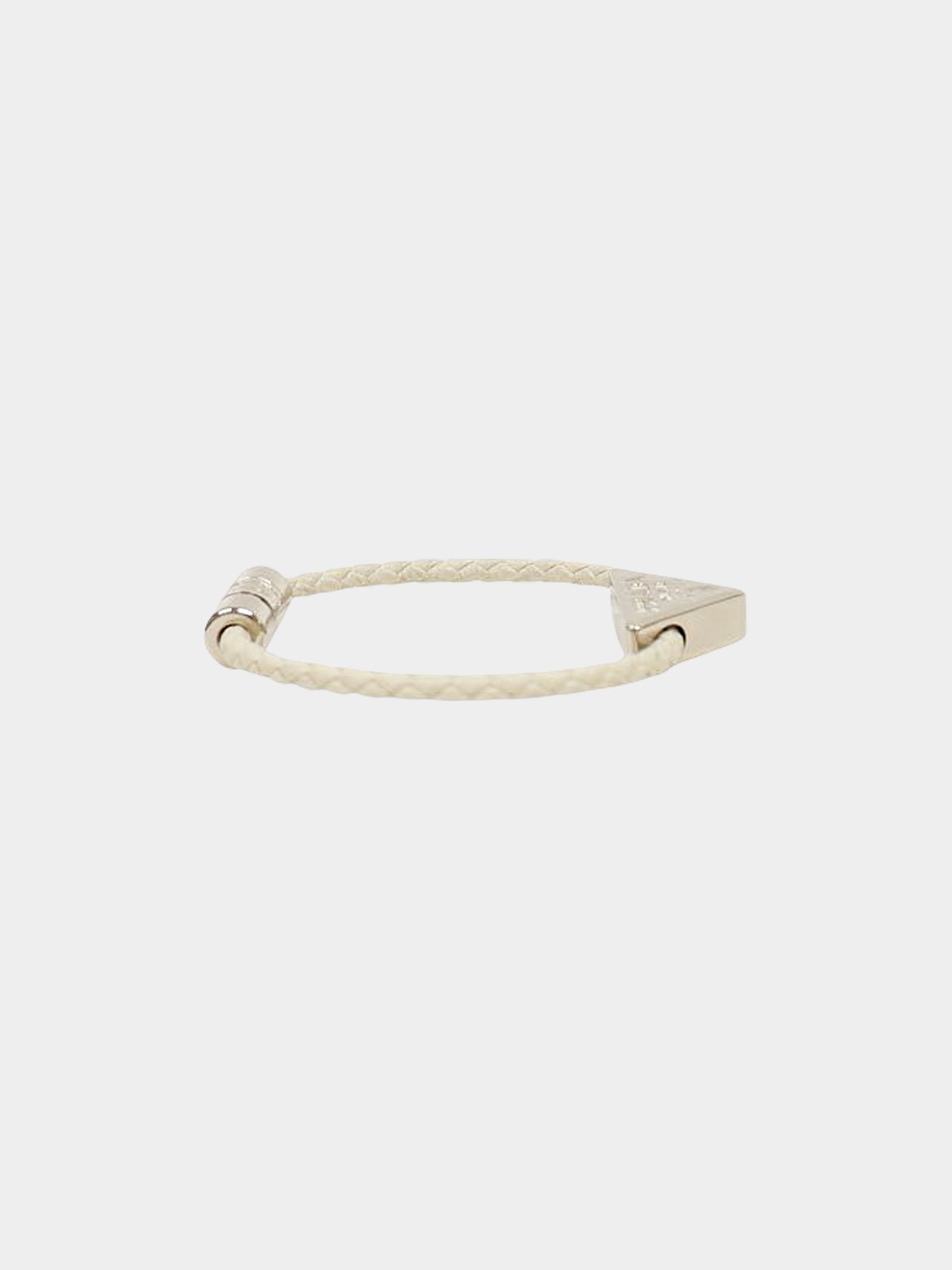 Prada 2024 Braided Leather And Silver Triangle Metal Logo Bracelet